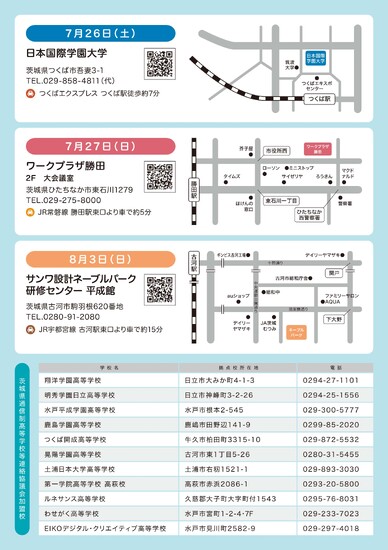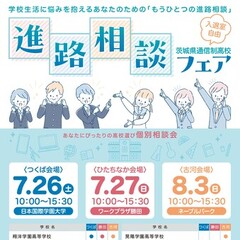 第2回進学相談フェアのお知らせ(茨通連主催) 2024.10.16 お知らせ 茨城県通信制高等学校等連絡協議会主催の令和6年度第2回進路相談フェアを開催いたします。 進路先に、通信制高校をご検討の方、進路選択でお悩みの中学生・高校生・保護者の皆様、是非ご来場をお待ちしております。 一覧に戻る