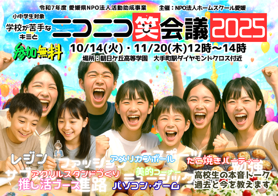 この秋、本学では 学校に行きづらさを抱える小中学生のための交流イベント「ニコニコ笑会議2025」 を開催いたします。