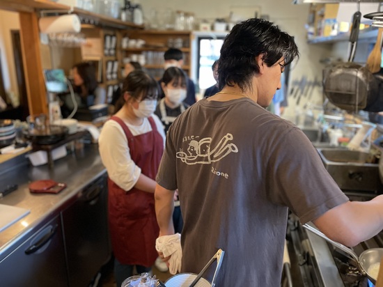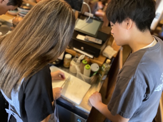 店長しゅん君や、そうじ君、けんいち君がサポートしてくれてのパスタ作りd( ̄  ̄)