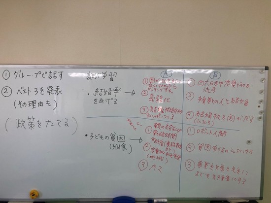 ☆オリジナル授業「選挙の立候補者になる!」☆ 2020-01-30 授業 GRES高等学院 サポートスクールGRESでは、毎週オリジナル授業を行います! 今回のオリジナル授業のテーマは 選挙の立候補者になる!です。 まずは選挙の基本的なことを学びました。 ・選挙は何のためにやる? ・選挙とは? ・税金、政府のしくみ 次にみんなで話し合い、身近なことから政策を考えてみる。 ・婚姻率と離婚率について ・貧困、孤食について 次は実際に立候補者になって演説をする準備に入ります☆★☆★ 一覧へ