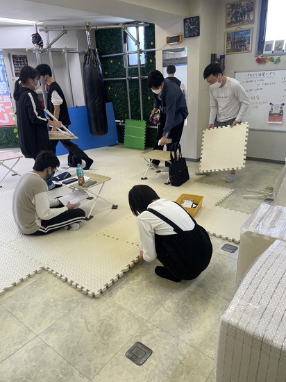 生徒のみんながマットの貼り替えをお手伝いしてくれました!