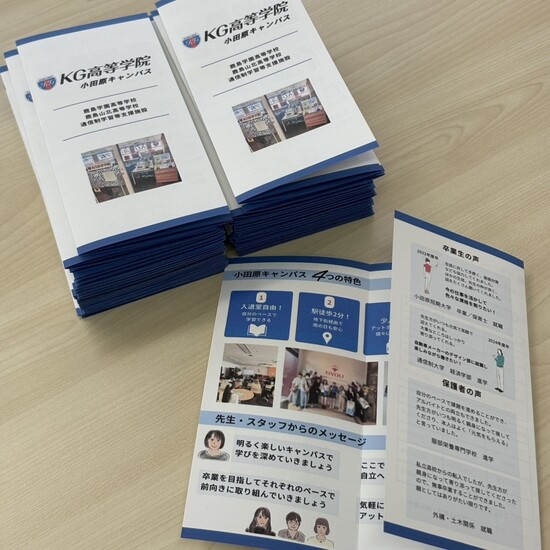 案内が新しくなりました! 2025-11-18 お知らせ KG高等学院 小田原キャンパス(連携鹿島山北) 小田原キャンパスの案内が新しくなりました😊 今回は3つ折りパンフレットです。 イメージカラーはブルーで爽やかに仕上げてみました。 ぜひお手に取ってみてください🌷 一覧へ