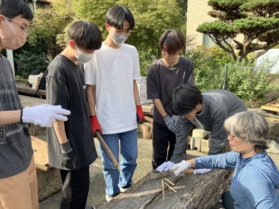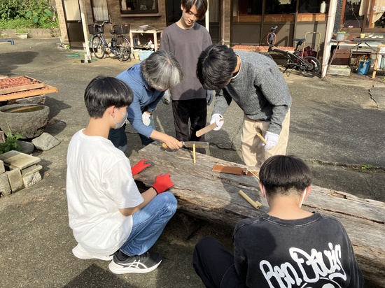 ↓地域ボランティアで竹炭墨汁作りと竹ペン作り。