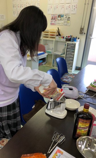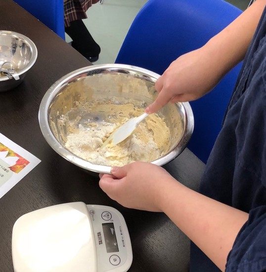 秋が深まった今日は、季節を感じるマロンケーキ!材料を測ります。