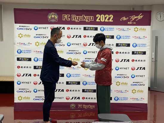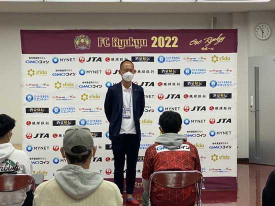 「この度はご入学おめでとうございます。仲間となる生徒にはFC琉球ユース選手がいたり、教職員の中にはFC琉球と関わるスタッフがいるといった、FC琉球を軸にしたユニークな形の学校となっています。自分のやりたいことをやりながら、時間を大事に使って高校生活をいい時間にできるよう、勉強にもスポーツにも取り組んでいってほしいと思います。その先の人生でサッカーと関わっていくことにもなると思いますので、そのための準備もしながら、様々なことに取り組んで頑張っていってほしいと思います。」