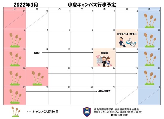 さて、小倉キャンパスは3月11日から4月6日まで春休み期間になります!