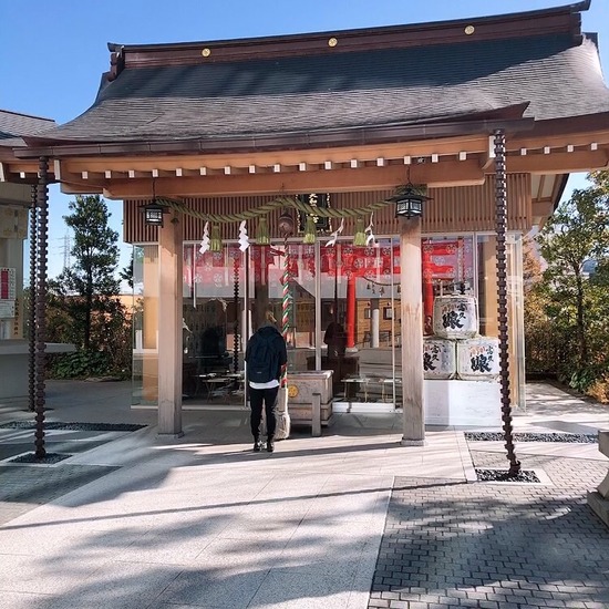 立派な石碑に迫力のある鳥居、近くには近未来な図書館。。