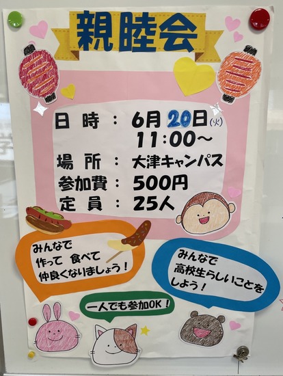 親睦会(特別活動)開催のお知らせ こんにちは、大津キャンパスです!