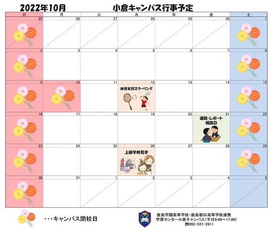 1枚目は小倉キャンパス10月のスケジュールです!
