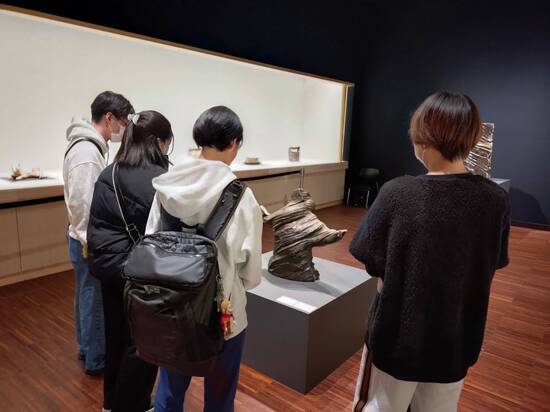 美術館では、備前焼作家で人間国宝の伊勢崎淳先生の作品を鑑賞し、力強く美しい作品に魅せられ、学芸員の先生に熱心に質問をする生徒もいました。