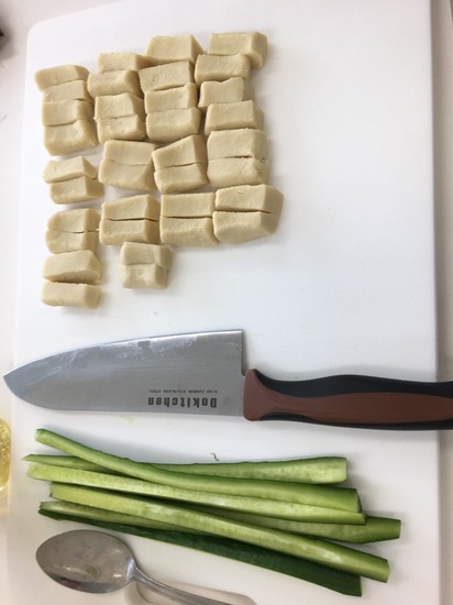 キャンパスではレンジでチンでできる高野豆腐ときゅうりのカット