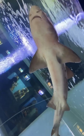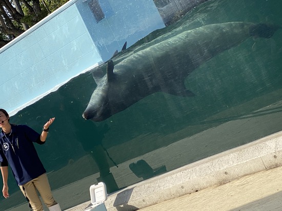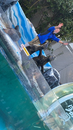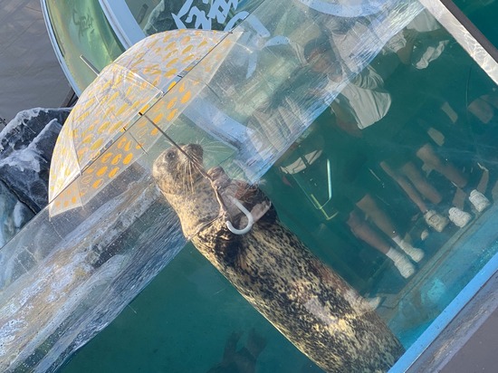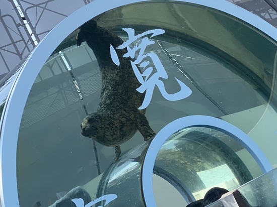 珍しい形の水槽はゼニガタアザラシにちなんで観音寺市の銭形「寛永通宝」を参考に作成されたようです。