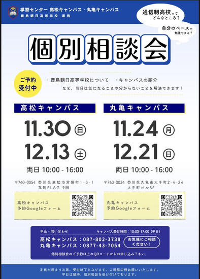 この度、高松キャンパスで個別相談会を開催致します。