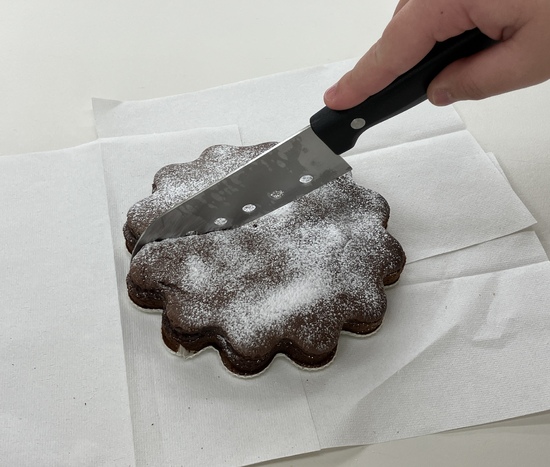 オーブンで焼き、切り分けると、かわいいハート形のガトーショコラの完成♡♡♡