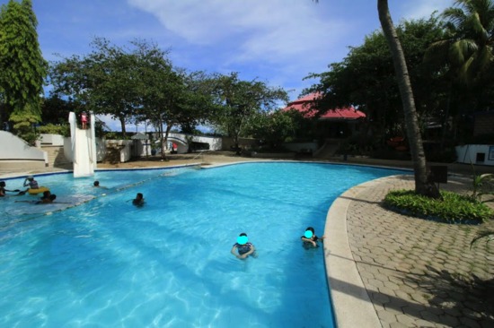 ホテルのプールはいつでも入りたいときに入れるそうです。広々〜〜ですね!