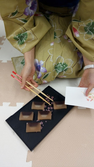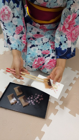 日本の文化の根底には、「おもてなし」と、「他者への気遣い」そして、「相手をうやまう」といった美しい「心」があふれています。お菓子を先にいただくときに「お先にいただきます」と言って会釈したりするのも体験してもらいました。