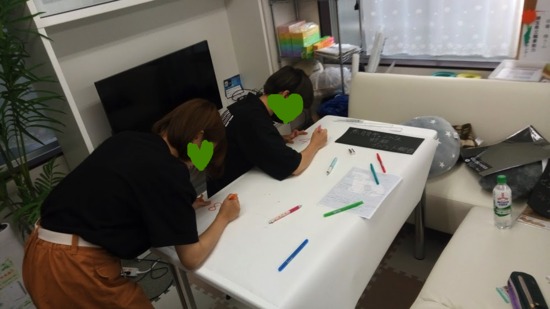 前期に行ったイベントの整理と確認をしているところ(2日目に来てくれた1、2年生たち)