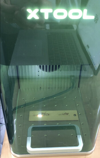 それからレーザープリンタを使って、しおりの元となる木材にプリントアウトします。