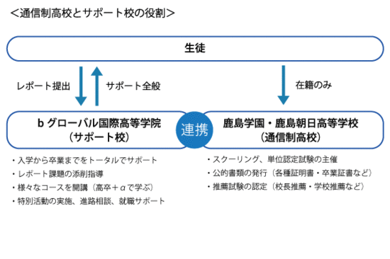 bグローバル国際高等学院(サポート校)は、鹿島グループのサポート校として、