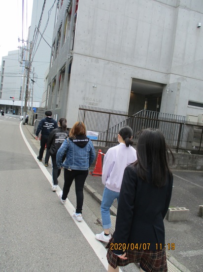 ガイダンス終了後は,避難訓練の一環として,キャンパス内の避難経路を確認後,地域の避難場所である千葉市立弁天小学校まで,実際に徒歩で練習しました。