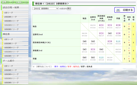 那覇西3rd、宜野湾2nd、知念高校、首里高校、鹿島朝日沖縄(FCR)