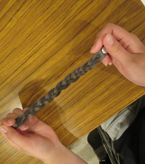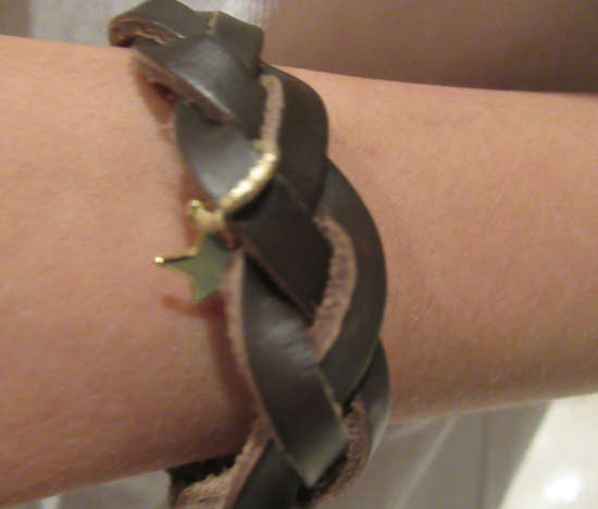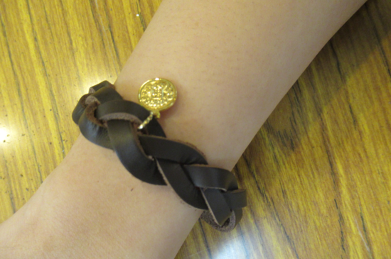 レザーを三つ編みにしていき、ブレスレットの形にします。