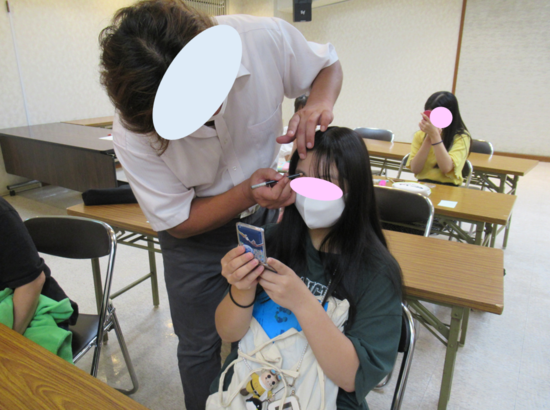講師の先生にメイクをしていただいたり、自分で、友達同士でも。