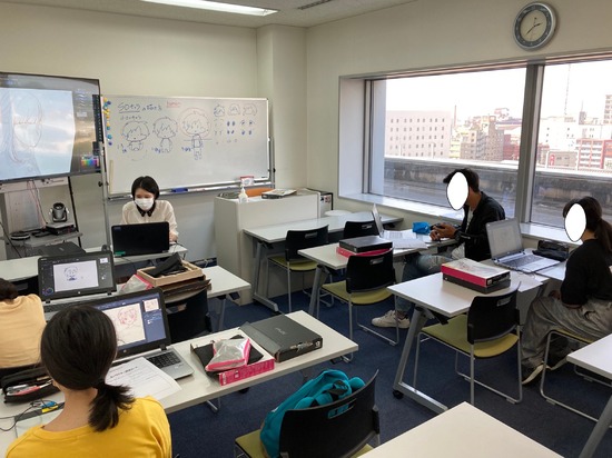 こちらは、マンガイラストの体験!生徒たちはパソコンとペンタブを使い、自分でキャラクターを考えてイラストを描いています!