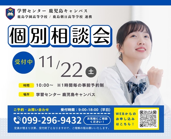 学習センター鹿児島キャンパスにて予約制の個別相談会を開催します。
