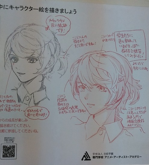 実際に髪型を描いて、漫画家の先生に直接アドバイスをいただいて、とても参考になったようでした。
