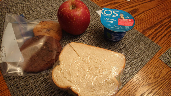 こちらでは、ランチは前日の夜につくっちゃうんですよね。サンドイッチとヨーグルト、りんごとクッキーです。