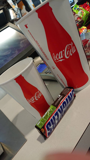 こちらは、ドリンク、チョコなどのお菓子、ポップコーンがセットなのが主流です!みてくださいこのでかさ!!!!