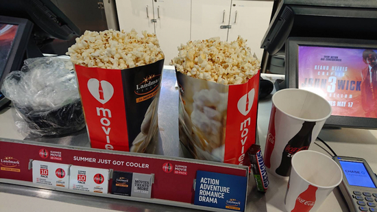 映画といえば、ポップコーンですよね!もちろん、本場のポップコーンを楽しみに買い物します。