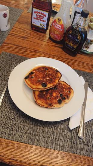 最後の日の朝は、ブルーベリーパンケーキを作ってもらえました。