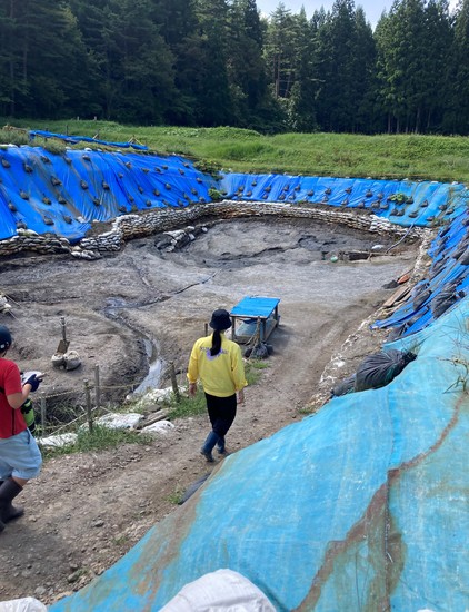 採掘した土はそのまま持ち帰り、乾燥させます…