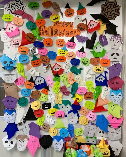 皆で折った折紙のハロウィン飾りです✨✨✨