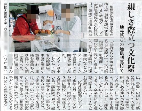 首都圏エリア 武蔵MSG高等学院 MSG相模原校(神奈川) 学習等支援施設情報お知らせ在校生・卒業生の声ブログ地図 2025.10.28 お知らせ 文化祭(輝望祭) 文化祭(輝望祭)の様子が、「タウンニュース」に掲載されました。(※実際の記事を加工している箇所があります) 学習等支援施設からのお知らせ 2025.08.05 オープンキャンパス 2025.07.23 通信制高校説明会 2025.06.24 通信制高校説明会を開催します 在校生・卒業生の声 2025年卒業生 S.Yさん 武蔵MSG高等学院 MSG相模原校 夢をあきらめないで 学習等支援施設情報お知らせ在校生・卒業生の声ブログ地図 首都圏エリア 東京 神奈川 千葉 埼玉 茨城 群馬 栃木 北海道エリア 北海道 東北エリア 岩手 宮城 福島 青森 秋田 山形 東海エリア 愛知 静岡 岐阜 北陸エリア 富山 石川 福井 甲信越エリア 長野 新潟 山梨 近畿エリア 大阪 京都 滋賀 兵庫 奈良 三重 和歌山 中国エリア 広島 鳥取 島根 岡山 山口 四国エリア 徳島 香川 愛媛 高知 九州エリア 福岡 鹿児島 佐賀 長崎 熊本 大分 宮崎 沖縄エリア 沖縄 ネット指導制 インターネット カシマの通信とは スイスイ、イキイキ、自分流 学び方を選べる通信制高校入学できる都道府県スイスイ高卒資格卒業までの流れ保護者の皆様へよくあるご質問 鹿島学園通信制とは 学び方&コースを選べる 特色学校案内学費について学習スタイルカリキュラムイキイキ体験学習学校行事制服について学生寮について 入学案内 募集要項、各入学案内 募集要項新入学転入学編入学 学習等支援施設 各地にひろがる学びの場 オプションコース 多彩に、楽しく、自分らしく オプションコース一覧大学進学アニメ・マンガ・ゲームダンス・芸能・声優音楽スポーツファッション・デザイン・アートネイル・メイク・美容eスポーツペット製菓・製パンITスキルアップ保育・福祉海外留学講座リスト 制服について 学生寮について 学費サポート制度 各種申請書ダウンロード 鹿島学園高等学校 オプション講座リスト お知らせ&申込み(在校生のみ) 在校生以外の方もカシマの通信の多彩な講座をご覧いただけます!