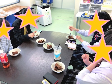 勉強の合間にひと休み。みんなでおいしくいただきました。