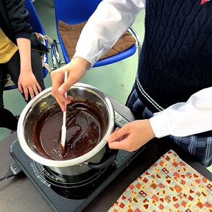 チョコレートを湯煎で溶かすとき、絶対にお湯が入らないように気をつけて!