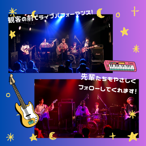 バンド活動、楽器演奏に興味のある方は見学も可能なので、気軽にお問い合わせください☆