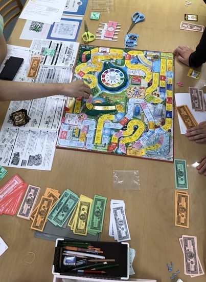 みんなでお菓子を食べながら『人生ゲーム』を行ないました。