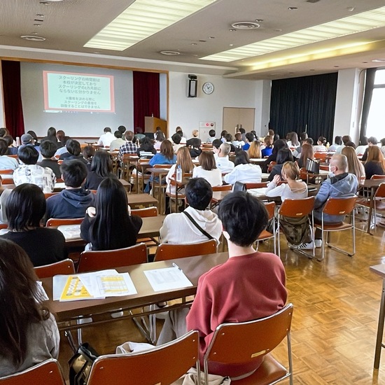 3月31日(日)に、大津市勤労福祉センター大ホールで、全学年合同オリエンテーションを行いました!