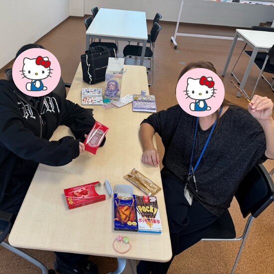 今日キャンパスに来てくれた生徒や職員で、お菓子を囲みながら楽しいひとときを過ごしました。