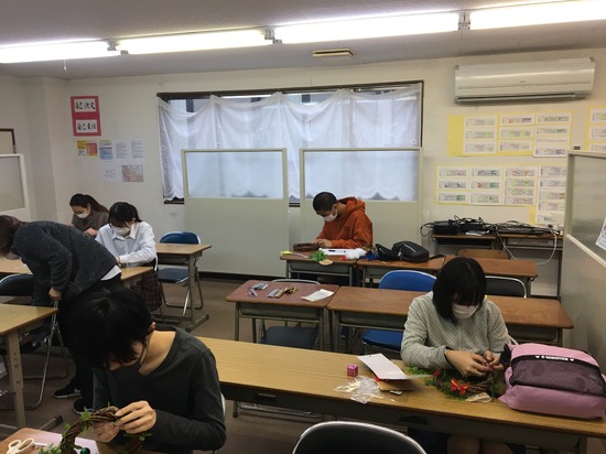 Xmasリースの制作をキャンパスで実施しました。