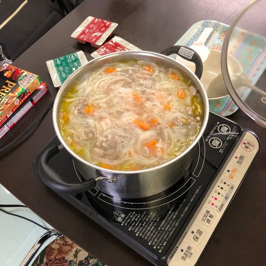 食材を煮込み中。