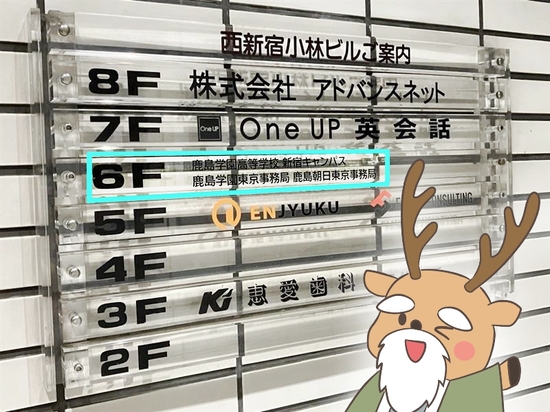 字が小さいですが、「鹿島学園高等学校 新宿キャンパス」と書いてあります!