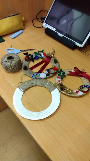 早速ですが、特別活動で実施予定のリース作りの見本を作ってみました!!
