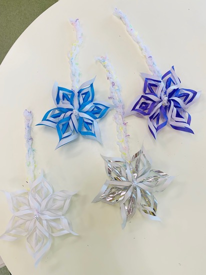 さて、先日生徒と一緒におりがみで雪の結晶づくりをしました!!