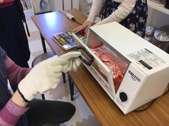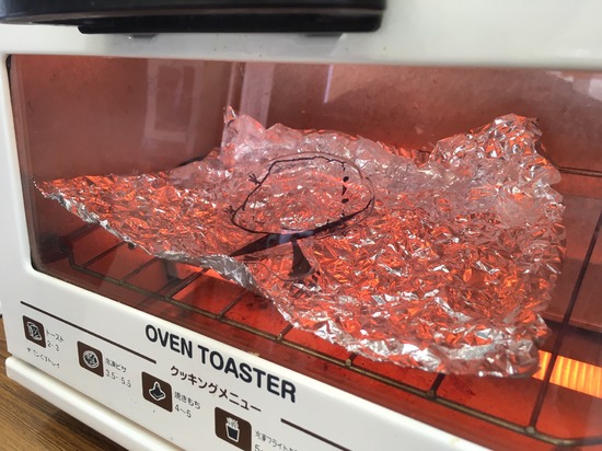 トースターで温めると縮んでいきます。